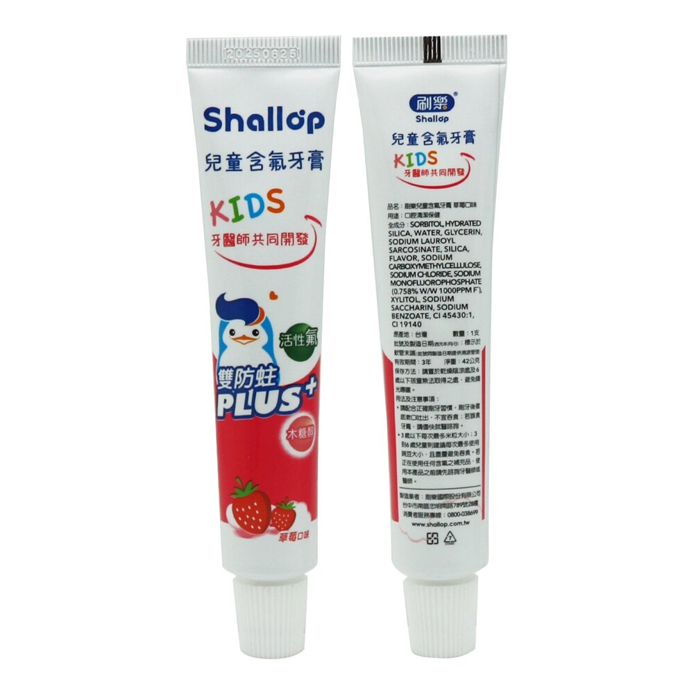 商品名稱:刷樂shallop 兒童含氟牙膏-草莓口味 42g