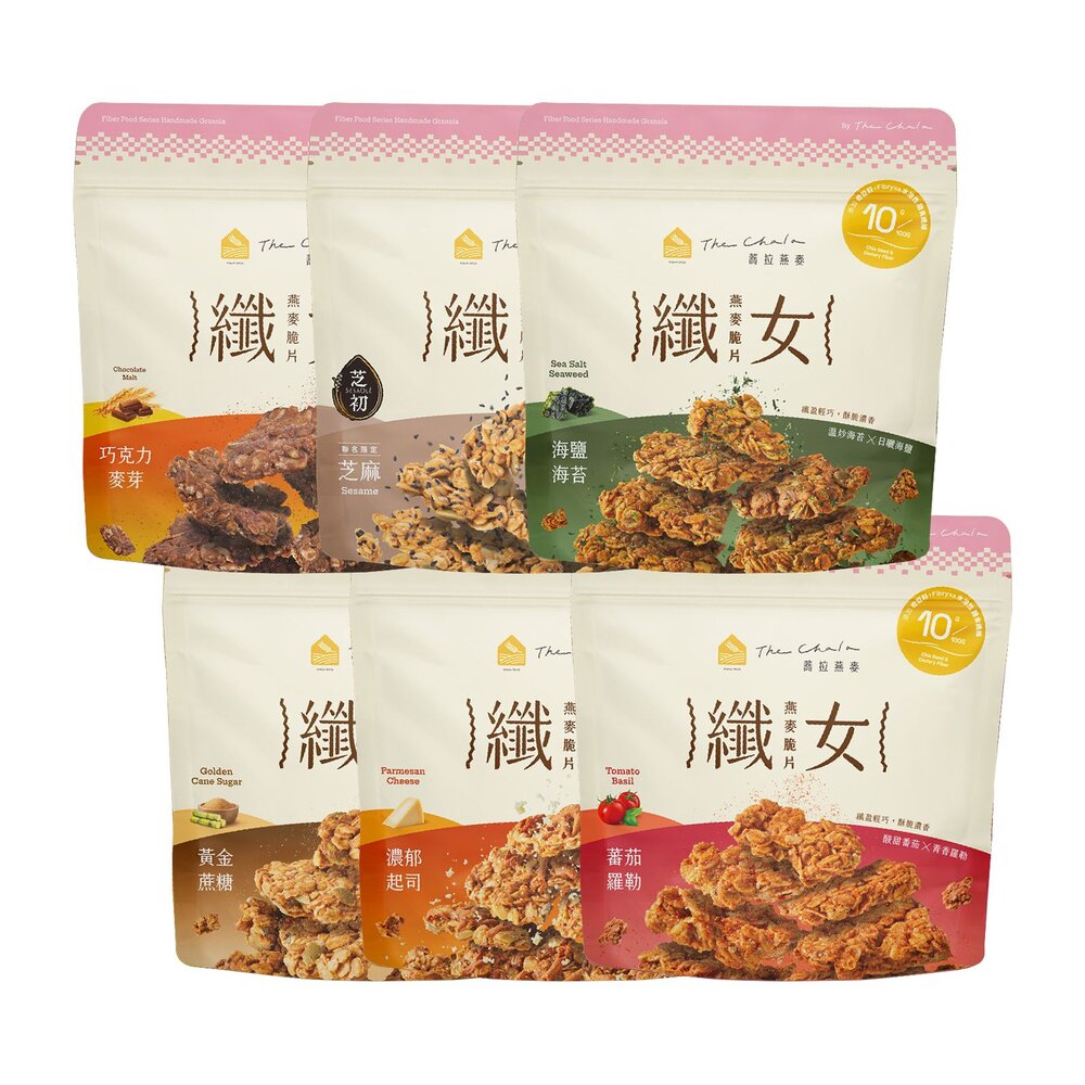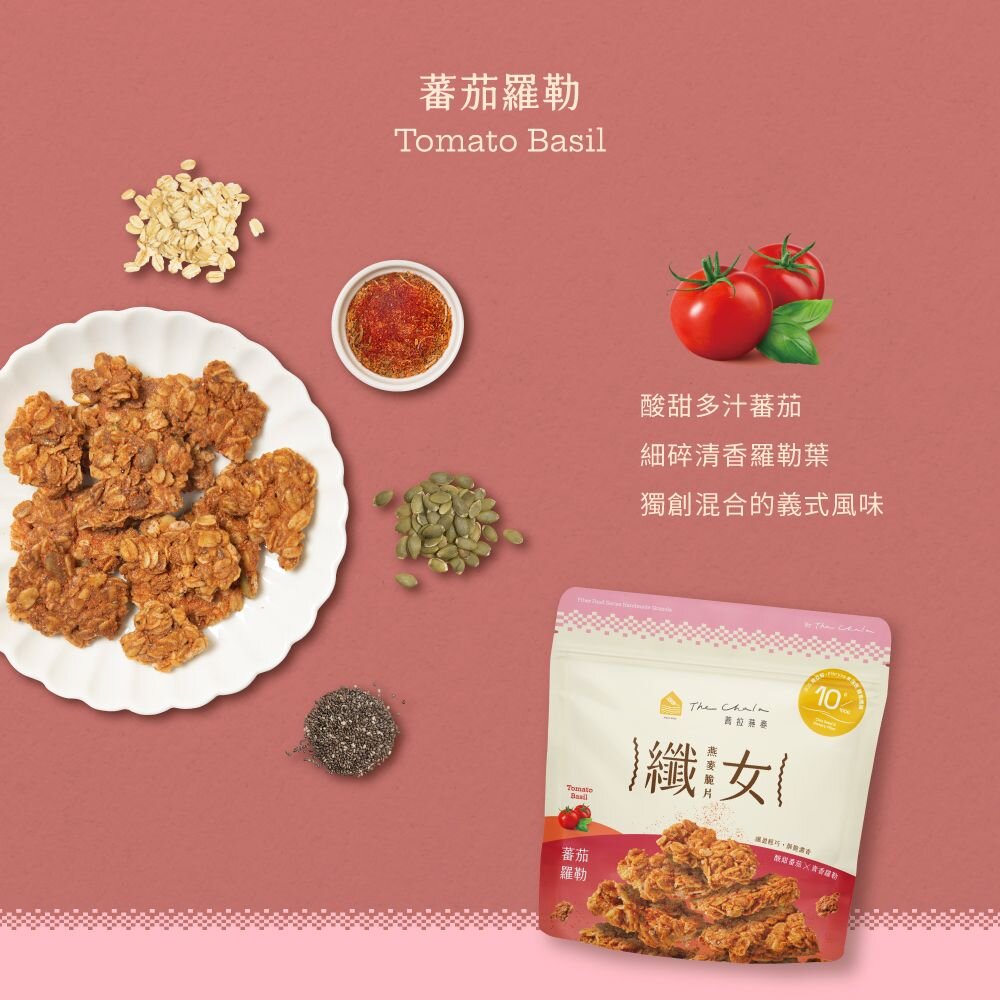 標籤:#The Chala, #纖女燕麥脆片, #黃金蔗糖, #海鹽海苔, #巧克力麥芽, #蕃茄羅勒, #濃郁起司