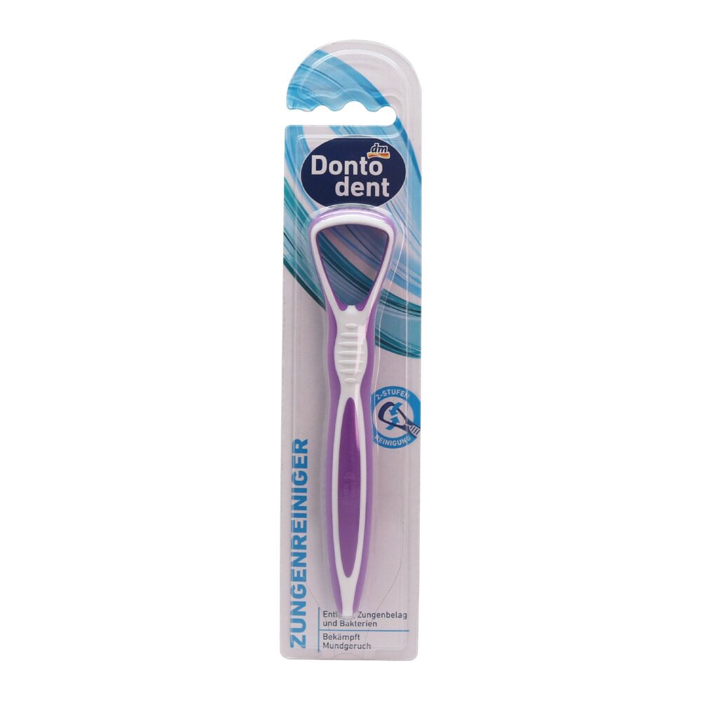 Dontodent 的舌頭清潔器通過其硬質和軟質刮擦邊緣的雙重系統可靠地去除舌頭上的牙菌斑和細菌。