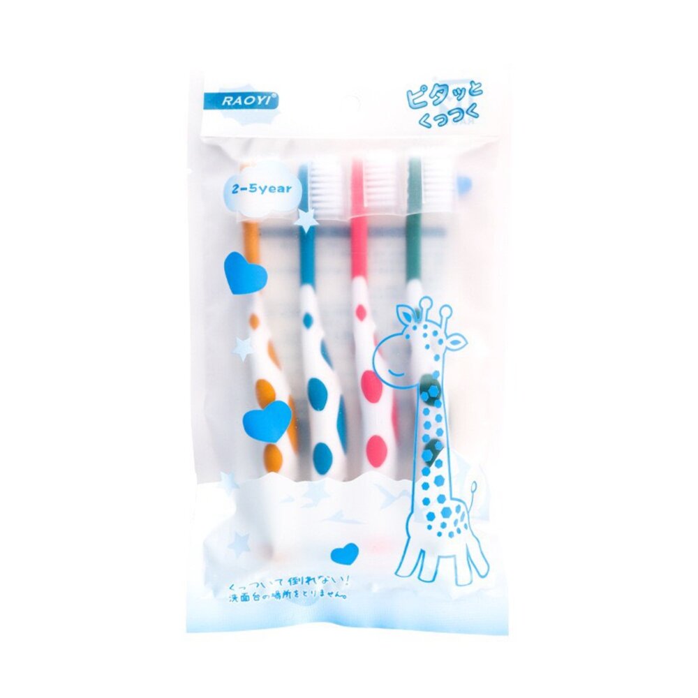 RAOYI 長頸鹿造型 兒童軟毛牙刷4支入/袋裝(背面舌苔刷)