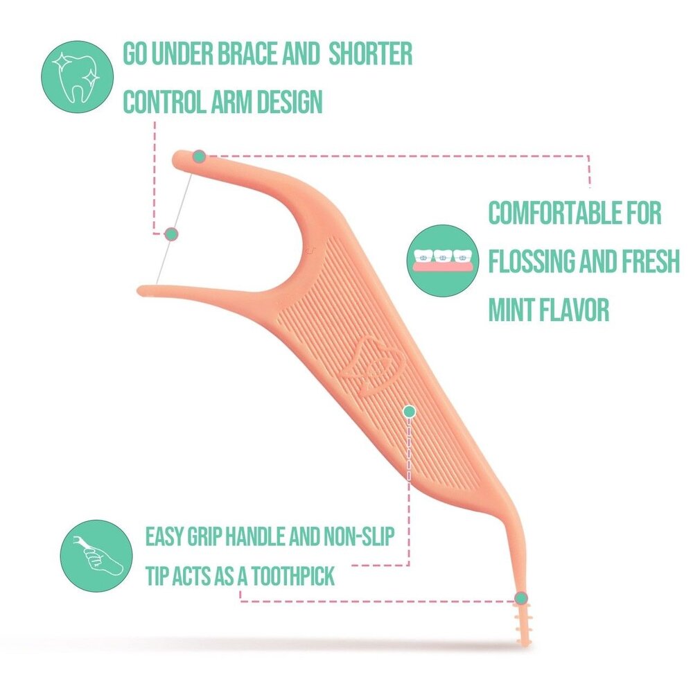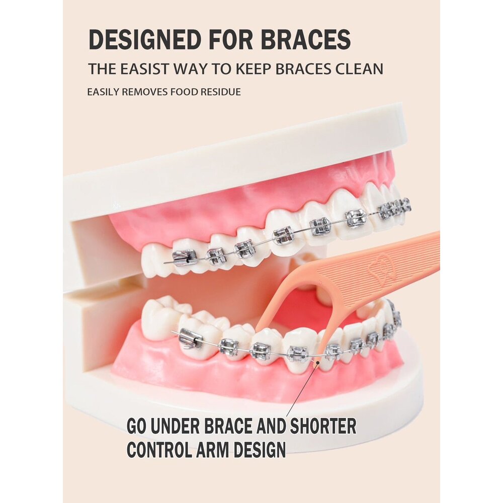 **矯正牙線棒**是專為牙齒矯正患者設計的口腔清潔工具,能有效協助配戴牙套時清潔牙縫與矯正器周圍,預防牙菌斑、蛀牙與牙齦炎等問題。